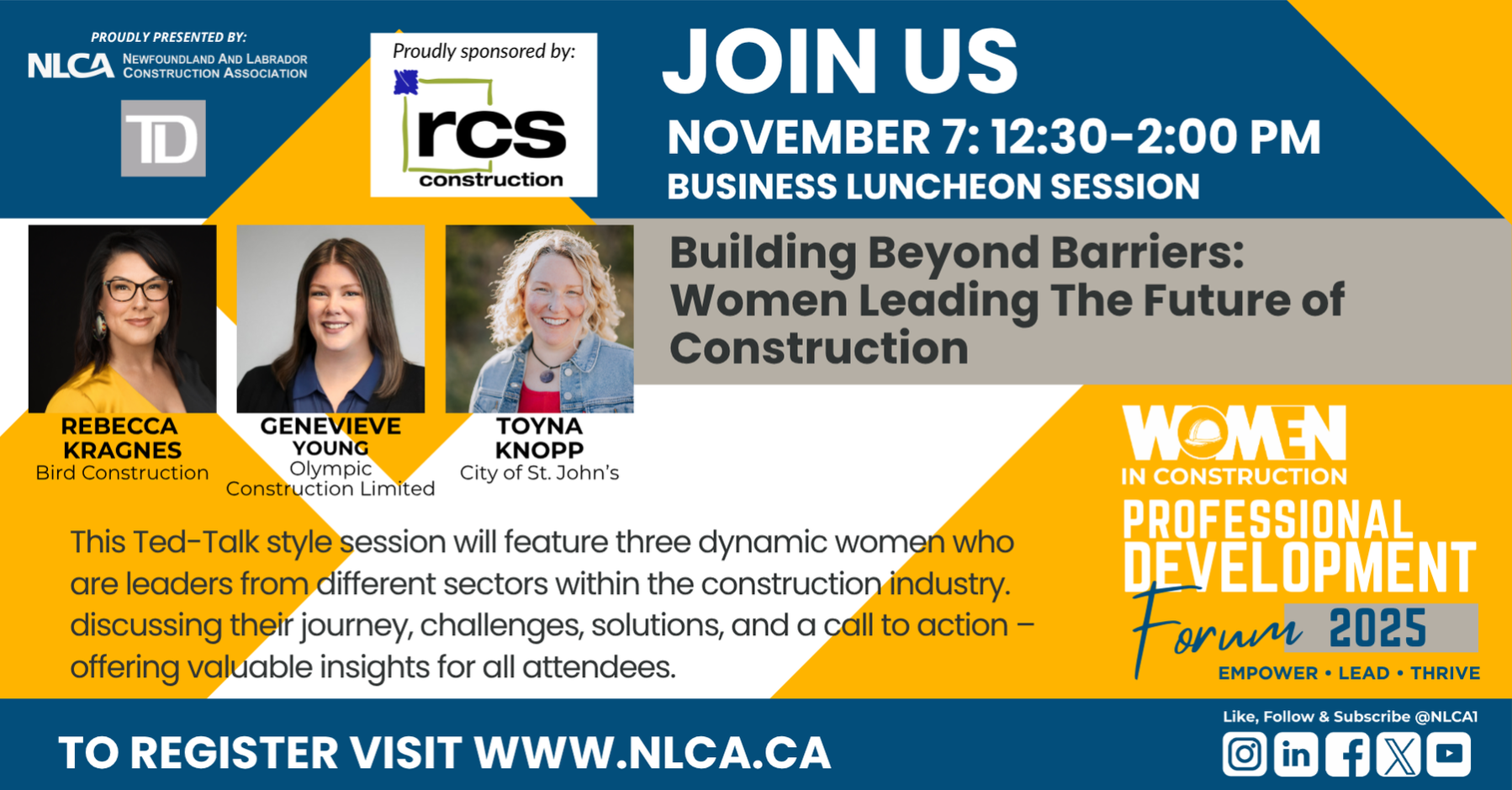 Join us on Friday, November 7 at The Jag Hotel for the 2025 Women in Construction Professional Development Forum —proudly presented by NLCA and TD Commercial Banking.