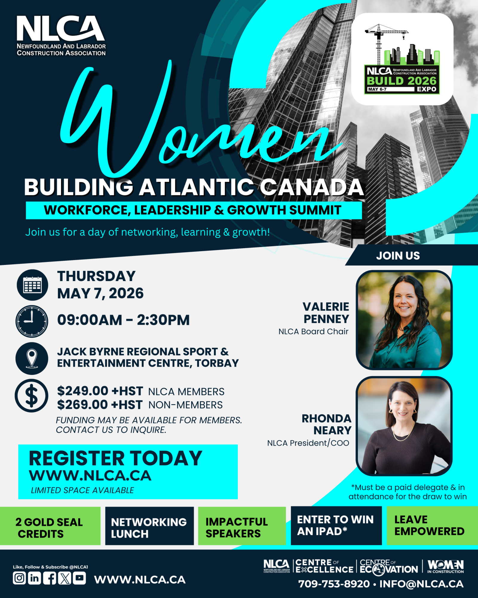 Through targeted workshops, mentorship opportunities, and direct employer engagement, the event aims to strengthen pathways for women to enter, remain, and advance in their construction industry careers—contributing to a more inclusive, resilient, and productive workforce for Newfoundland & Labrador and Atlantic Canada.